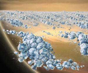 太陽の光が当たる場所が劇的に変化することで、大気が大きくかき乱され、巨大な嵐が発生するのです。2007年頃、天王星が「春分」を迎えたときには、それまで静かだった大気に巨大な雲の渦が観測されました。