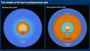 地球の自転軸は、垂直から約23.4度ほど少し傾いているだけですが、天王星の傾きはなんと約98度。つまり、惑星が道の上を「転がりながら」太陽の周りを回っているような状態なのです。